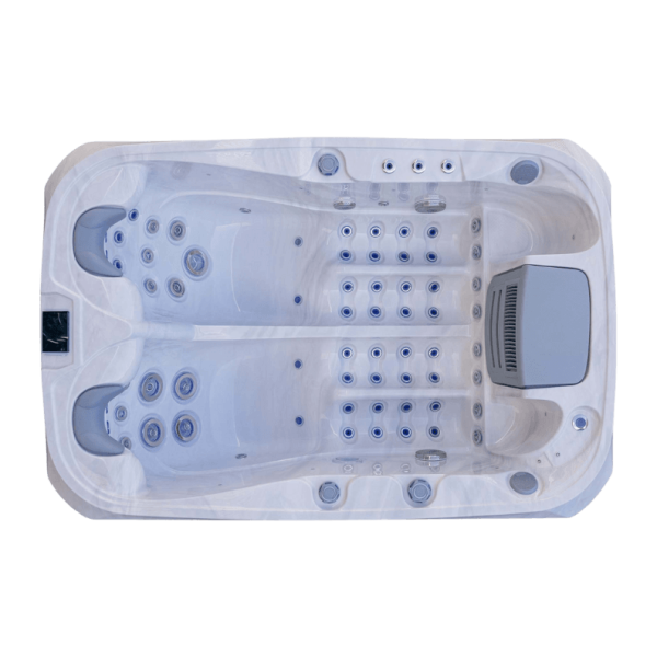 The AuroraThree hot tub is a compact luxury spa crafted for two, offering an immersive and efficient hydrotherapy experience. Measuring 2100mm x 1400mm x 780mm and weighing 230kg, it holds 480 litres and features dual loungers for full-body relaxation. The 65 light-up jets include a carefully balanced array of 5″, 4″, 3.5″, 2.5″, and 1″ jets—both rotational and directional—along with air jets, three fountains, and a pop-up fountain to enhance the spa environment. Built from premium USA Aristech Acrylic, it combines elegant design with functional durability.