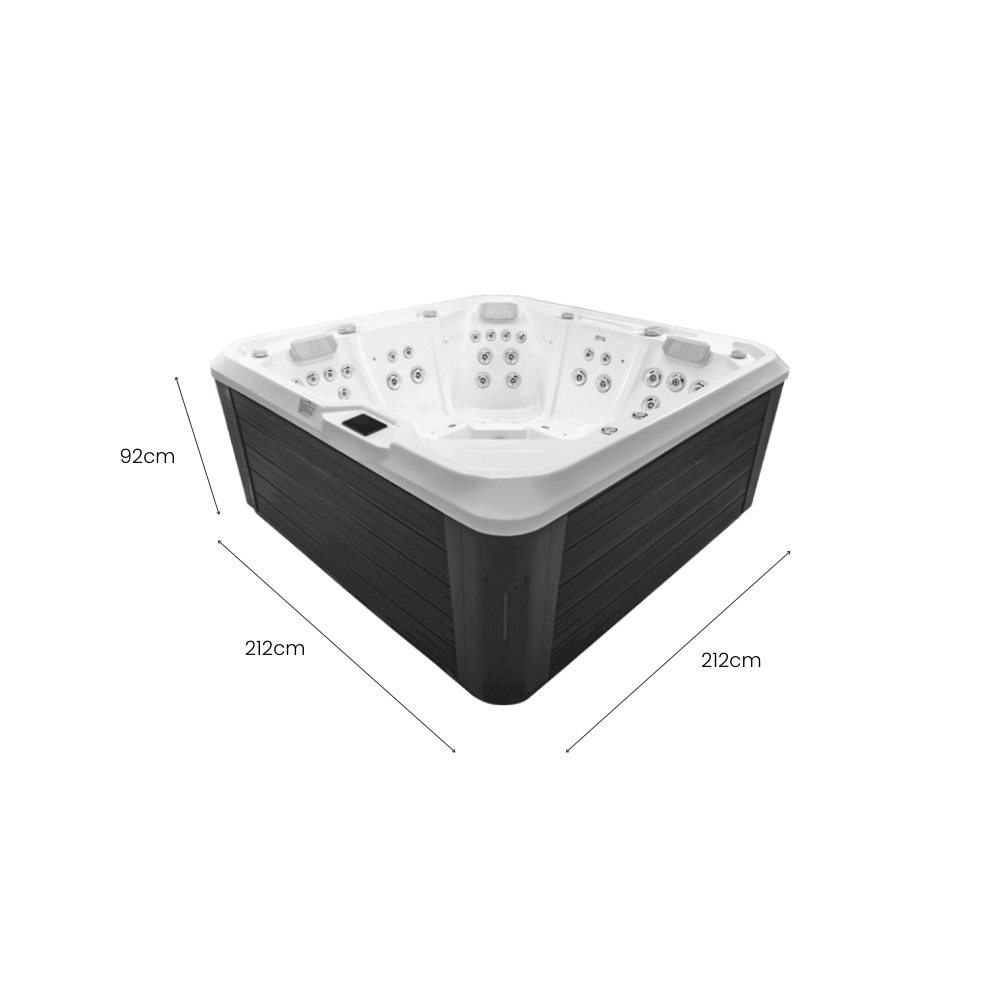 With a water capacity of 1310 litres and an empty weight of 335kg, the Dominican is both spacious and energy-efficient. Designed for comfort and performance, it offers an exceptional blend of relaxation, technology, and style, making it an excellent choice for those seeking a premium hot tub experience.