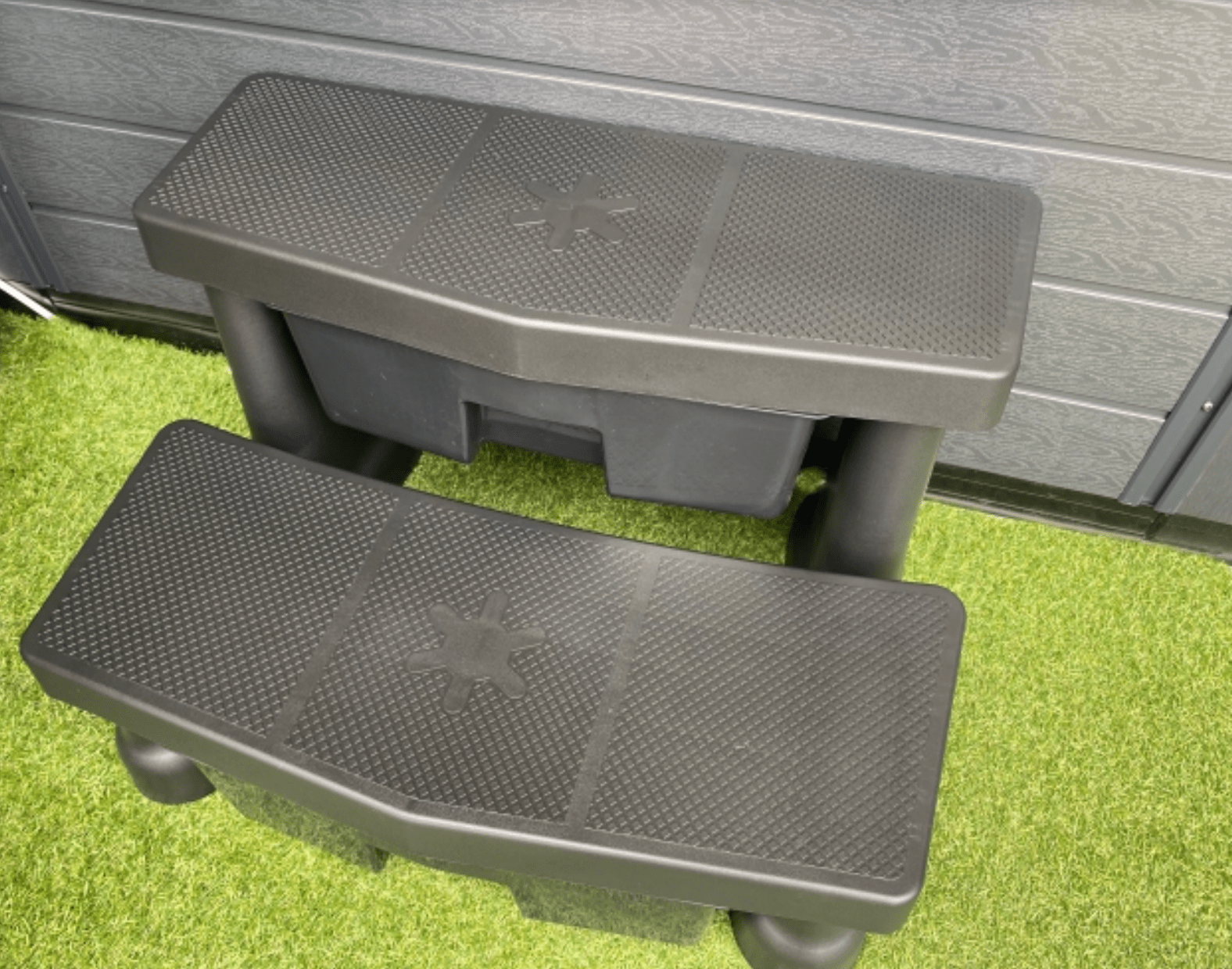 This 2 tier curved spa step makes accessing your hot tub nice and easy.